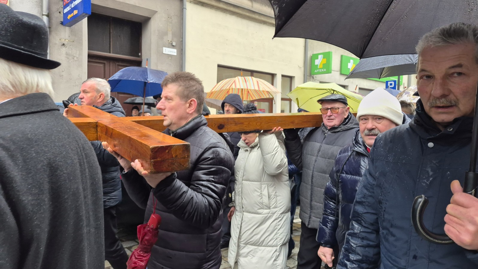 Szczególnym momentem dla naszej wspólnoty była V stacja Drogi Krzyżowej, która znajdowała się bezpośrednio przy kaliskiej Katedrze. To właśnie tam ciężar krzyża spoczął na ramionach naszych parafian. Reprezentacja wiernych z Katedry z wielkim skupieniem i godnością przeprowadziła procesję przez ten etap rozważań, symbolicznie jednocząc się z Szymonem z Cyreny i cierpiącym Chrystusem.